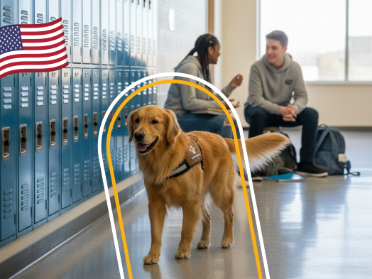 Staff members also bring their own dogs to school. A history teacher teaches alongside Lily, a Labrador retriever, while the guidance director has a corgi and poodle mix named Riggs.