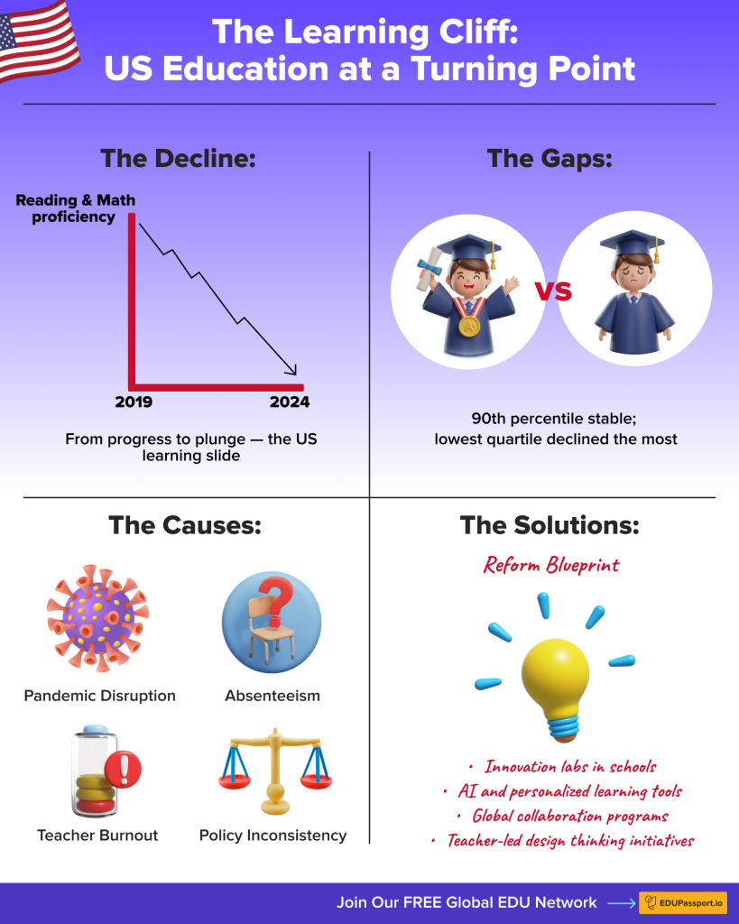That “some” could change — if schools lean into innovation. Think project-based learning, AI-supported tutoring, and redesigned curricula that make literacy and numeracy relevant again. The next phase of US education reform will hinge on bold experimentation, not bureaucracy.